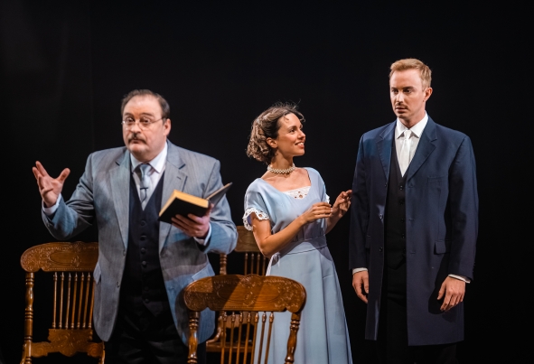 Собственно, постановки по "Анне Карениной" я до сих пор не видела вообще, а тут было обещано что-то совсем необычное - "Владимир Набоков, по Льву Толстому". Т.е. действительно лекция?...